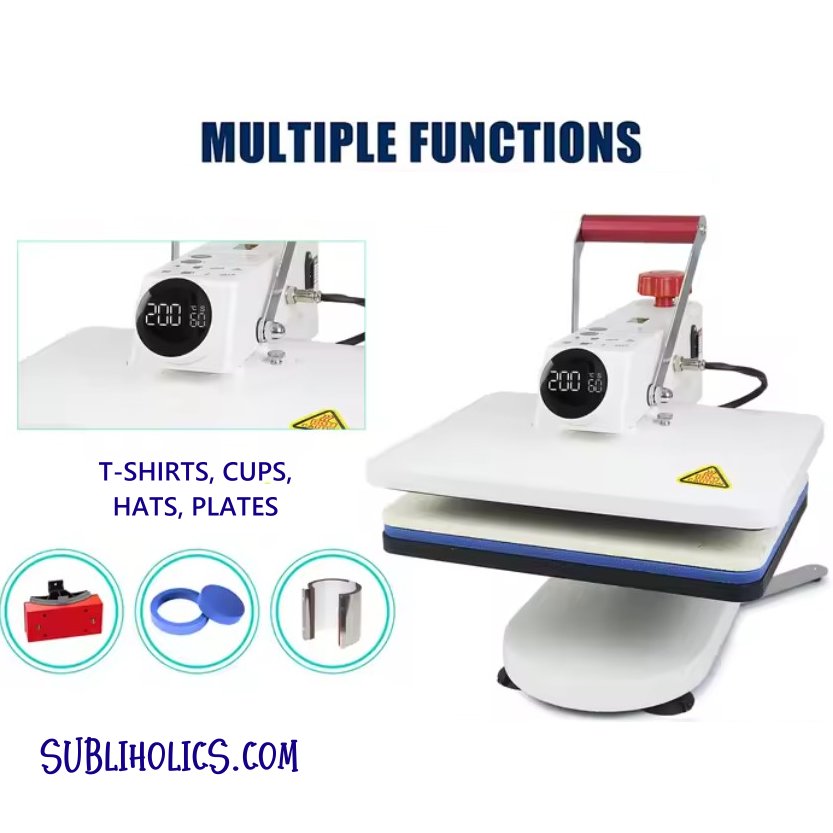 • The Freesub Mug Sublimation Machine is an 8-in-1 combo heat press machine designed for printing on mugs, caps, T-shirts, and more.